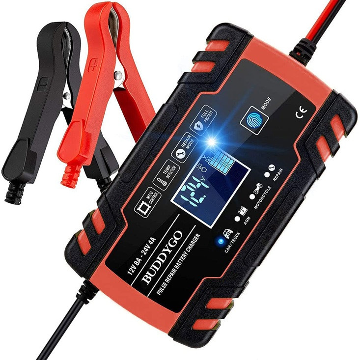 BLACK 12V 8A 24V 4A-s LCD kijelzős akkumulátor intelligens töltő AGM/GEL/SLA/WET/CYCLE/EFB/ólom-savas motorkerékpár és gépkocsi akkumulátorokhoz. Intelligens észlelés, intelligens felismerés, intelligens védelem és automatikus leállítás teljesen feltöltött állapotban. Válassza ki az üzemmódot, csatlakoztassa az akkumulátort a 12V/24V töltés automatikus felismerése és átalakítása emiatt egyszerű a kezelése. Egy kattintásos javítás: válassza ki a javítási módot, lehet feszültségszegény akkumulátoron, üresjárati akkumulátoron. Ne töltsön az akkumulátorba, jó javítási aktiváló hatása van! Az új, nagy képernyős kialakítás az akkumulátortesztelési eredmények intuitívabb megjelenítését teszi lehetővé, lehetővé téve az aktuális feszültség, áram, akkumulátor töltöttségi szint, hőmérséklet, téli/nyári üzemmód és egyebek ciklikus megjelenítését. Többszörös védelem: fordított védelem, rövidzárlat elleni védelem, túláramvédelem, túlmelegedés elleni védelem, túlfeszültség elleni védelem, alacsony feszültség elleni védelem, áramütés elleni védelem, tűzvédelem, kényelmesebb használatot tesz lehetővé.