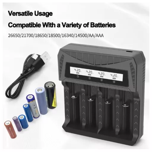 - Támogatott akkumulátorméretek: R6 AA, R03 AAA, 14500, 18500, 18650, 21700, 26650, 16340
