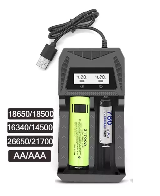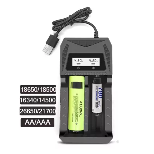 - Támogatott akkumulátorméretek: R6 AA, R03 AAA, 14500, 18500, 18650, 21700, 26650, 16340