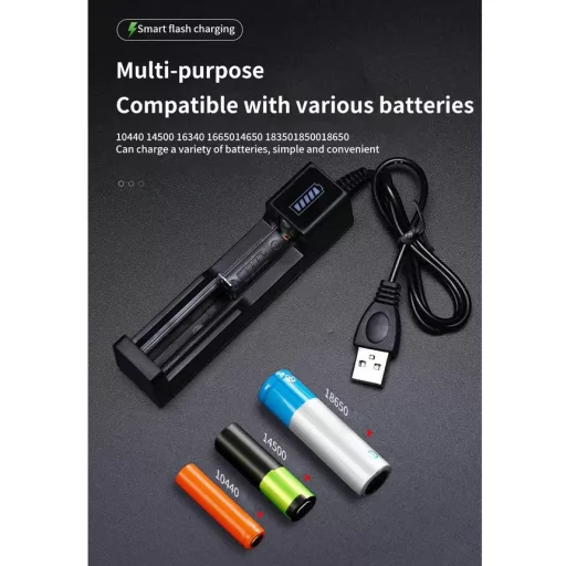A következő lítium akkumulátorokkal kompatibilis: 1 foglalat 10440,14500,16340,16650,14650,18350,18500,18650
