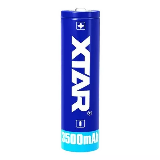XTAR 18650 3,6V 3500mAh (12,9Wh) 10A megengedett folyamatos terhelést bíró,védelemmel tehát túltöltés, túlterhelés és rövidzárlat ellen védett kúpos érintkezős Li-ion akkumulátor.Töltési mennyiség kb.500x-os. Méret 69 mm x 18,4 mm Súly 45 g Felhasználható fejlámpa, kézi lámpa és egyéb hordozható elektromos eszközökben. Működési hőmérséklet -20 +60 fok