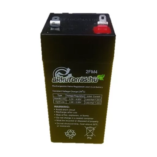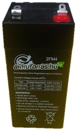 4V 4Ah mérleg akkumulátor Méret: (Sz) 47,4 mm x (H) 47 mm x (M) 100,8 mm saruk nélkül Súly: 462 g