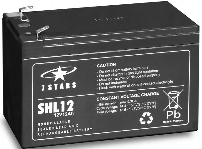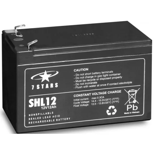A 7 Stars SHL12-12 egy 12V-os, 12Ah kapacitású zárt ólom-savas (VRLA) akkumulátor, amelyet főként szünetmentes tápegységekhez (UPS), biztonsági rendszerekhez, napelemes rendszerekhez és más energiaigényes berendezésekhez terveztek.
