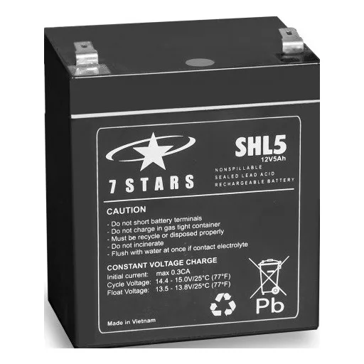 A 7 Stars SHL5-12 egy 12V-os, 5Ah kapacitású zárt ólom-savas (VRLA) akkumulátor, amelyet széles körben használnak szünetmentes tápegységekhez (UPS), biztonságtechnikai rendszerekhez, vészvilágításhoz és egyéb kis- és közepes energiaigényű eszközökhöz.