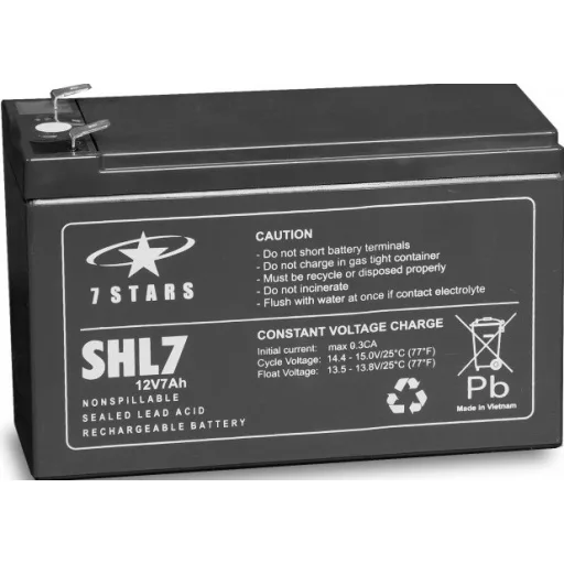 A 7 Stars SHL7-12 egy 12V-os, 7Ah kapacitású zárt ólom-savas (VRLA) akkumulátor, amelyet széles körben használnak szünetmentes tápegységekhez (UPS), riasztórendszerekhez, vészvilágításhoz, és más kis- és közepes energiaigényű alkalmazásokhoz.