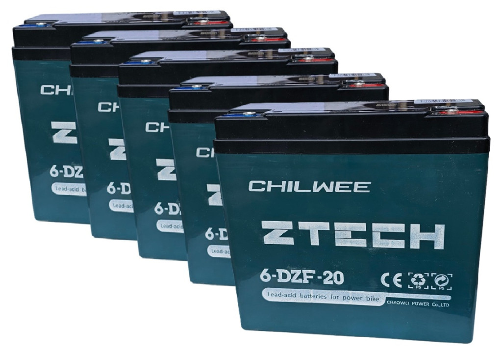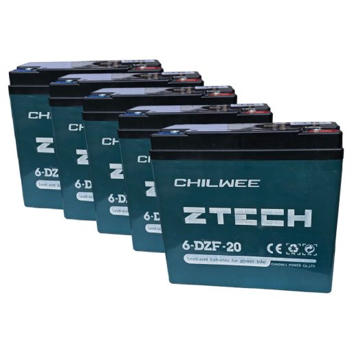 60V 20Ah CHILWEE ZTECH (5db 12V 20Ah) 6-DZF-20 vagy 6-DZM-20 elektromos kerékpárba ciklikus zselés akkumulátor csavaros csatlakozással. Méret:(H)181mm x (Sz)76mm x (M)167mm Súly:6.2kg Garancia 12 hónap + 12 hónap jótállási idő. Várható élettartam 5 év (20 órás kisütésnél, 25°C-on). Felhasználási terület: elektromos kerékpár, e-bike, elektromos meghajtású autó, golfkocsi, kerekesszék, rokkantkocsi, tricikli...stb.