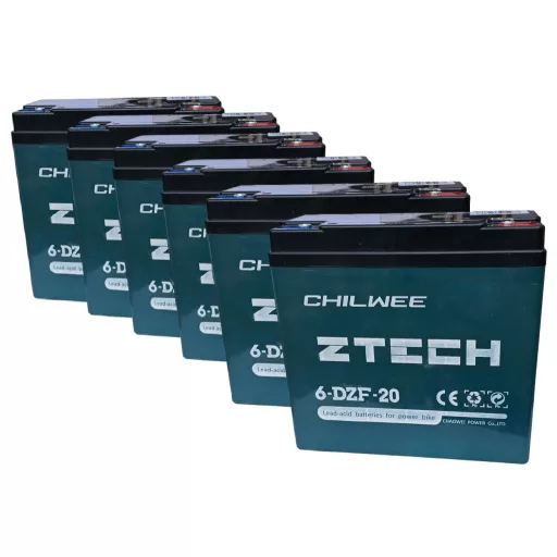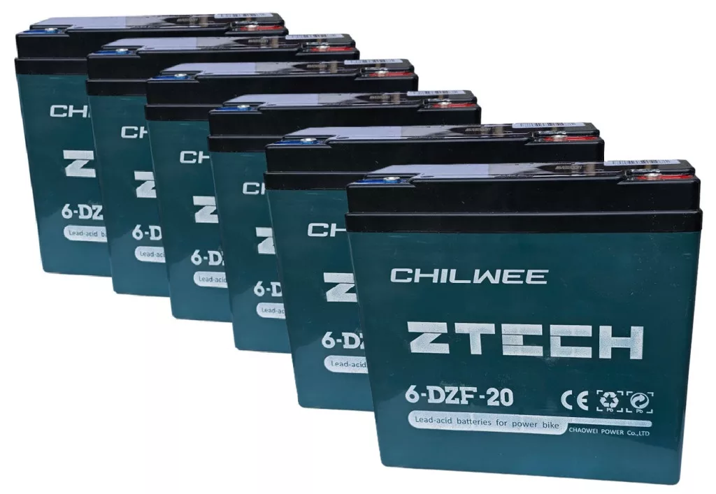 72V 20Ah CHILWEE ZTECH (6db 12V 20Ah) 6-DZF-20 vagy 6-DZM-20 elektromos kerékpárba ciklikus zselés akkumulátor csavaros csatlakozással. Méret:(H)181mm x (Sz)76mm x (M)167mm Súly:6.2kg Garancia 12 hónap + 12 hónap jótállási idő. Várható élettartam 5 év (20 órás kisütésnél, 25°C-on). Felhasználási terület: elektromos kerékpár, e-bike, elektromos meghajtású autó, golfkocsi, kerekesszék, rokkantkocsi, tricikli...stb.