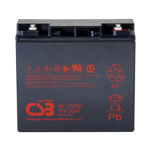 A GP sorozatú CSB akkumulátorokat a legszélesebb körű alkalmazásokhoz tervezték. A GP12200 akkumulátorok 260 kisütési ciklusig (100%-s kisütési mélység esetén), vagy akár 5 évig "készenléti" (Stand-by) üzemmódban használhatóak. A CSB akkumulátorok karbantartást nem igényelnek, teljesen zártak és bármilyen helyzetben működnek.