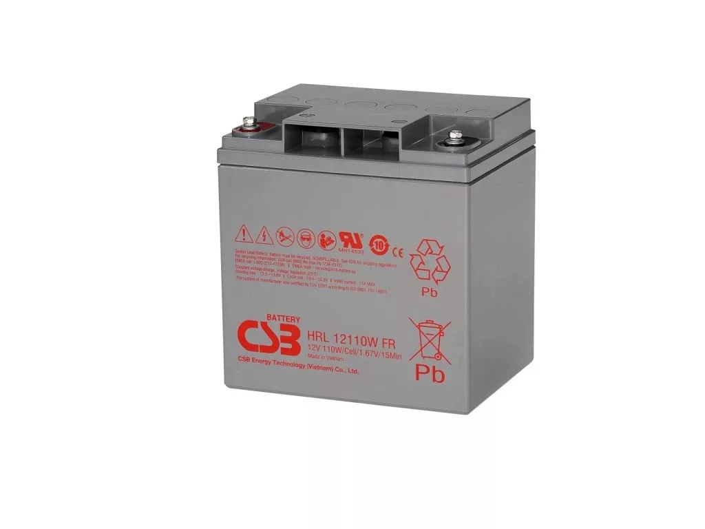 HRL12110W 12V 27Ah – tartalék áramforrás, gondozásmentes, VRLA, teljesen zárt, nagy teljesítményű CSB Battery márkájú zselés akkumulátor. AGM technológia. Szünetmentesekhez, riasztókhoz, tűzvédelmi eszközökhöz.