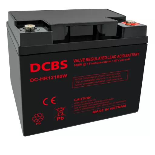 A DCBS DC-HR12160W egy 12V-os, 45Ah kapacitású zárt ólom-sav (VRLA) akkumulátor, amely kiváló választás szünetmentes tápegységekhez (UPS), távközlési rendszerekhez, orvosi berendezésekhez és egyéb ipari vagy háztartási alkalmazásokhoz.
