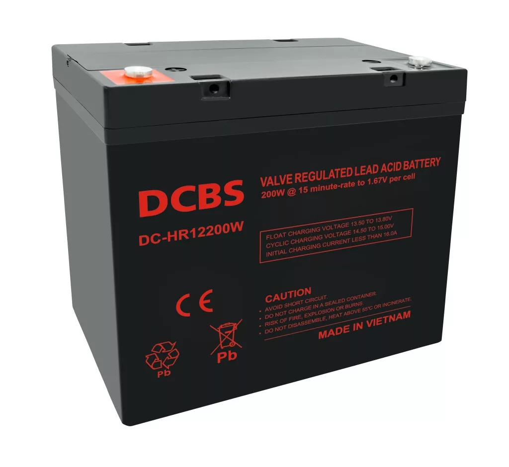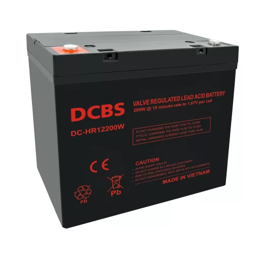A DCBS HR12200W egy 12V-os, 55Ah kapacitású, zárt, gondozásmentes AGM akkumulátor. Kiváló választás olyan alkalmazásokhoz, ahol megbízható és tartós energiatárolási megoldásra van szükség, például szünetmentes tápegységekhez (UPS), napelemes rendszerekhez, biztonsági rendszerekhez, vagy elektromos járművekhez.