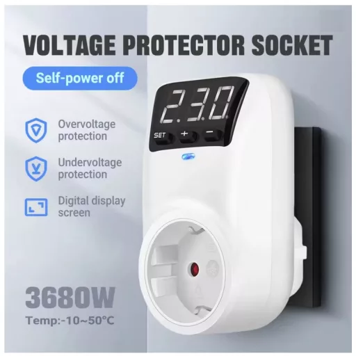 Otthoni felhasználásra szánt automatikus túlfeszültségvédő hálózati aljzat digitális kijelzővel, AC 230V, 16A túlfeszültségvédő. Biztosítsa tv-jét, hűtőszekrényét, PC-jét vagy egyéb hálózatról működő eszközét ezzel az egyszerő védő aljzattal.