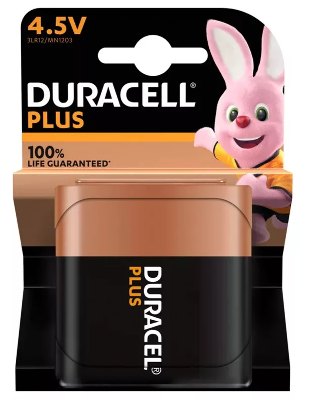 A Duracell Plus 3LR12 Alkáli 4,5V tartós elem a megbízható energiát igénylő elektronikai eszközökben használható elemek sorába tartozik. További jelölései: 4,5V, 3R12, 3LR12S, 3LR12, MN1203, 4012.