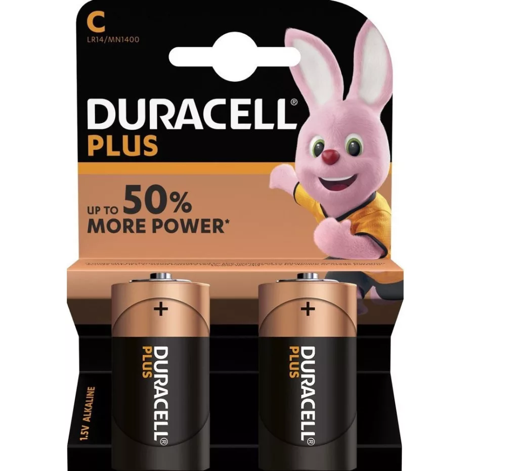 A Duracell Plus Alkáli 1,5V-os tartós Baby eleme - C/LR14/MN1400/R14/MX1400/LR14/L/AM2/E936/4014/AM-2 - a mindennapi használati eszközökbe. Az új Duracell elemek még koncentráltabb energiával bírnak. Új, ún. High-Denisty magjuknak köszönhetően minden eddiginél hosszabb élettartammal rendelkeznek. Mindegy milyen eszközköz használjuk, a Duracell mindig a legjobb teljesítmányt nyújtja "Duralock" töltésmegörzővel. Felhasználási terület:távirányító,óra,rádió,fényképezőgép,elemlámpa, hordozható játékkonzol,borotva,motoros játék,elektromos fogkefe stb.