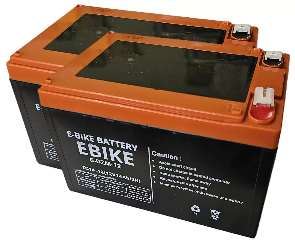 24V 14Ah (2db 12V 14Ah) E-BIKE 6-DZM-12 vagy újabban 6-DZF-12 típusú elektromos kerékpárba ciklikus zselés akkumulátor. Csúszósarus csatlakozás. Súly: 4,35kg/db Várható élettartam 3-5 év (3 órás kisütésnél, 25°C-on) Felhasználási terület: elektromos kerékpár, e-bike, golfkocsi, kerekesszék, rokkantkocsi...stb.