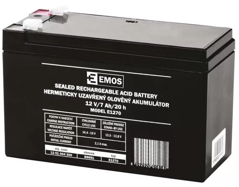 Az Emos B9691 egy zárt ólomsavas (VRLA) AGM akkumulátor, amelyet elsősorban szünetmentes tápegységekhez (UPS), biztonsági rendszerekhez, vészvilágításhoz és más kis fogyasztású eszközökhöz használnak.