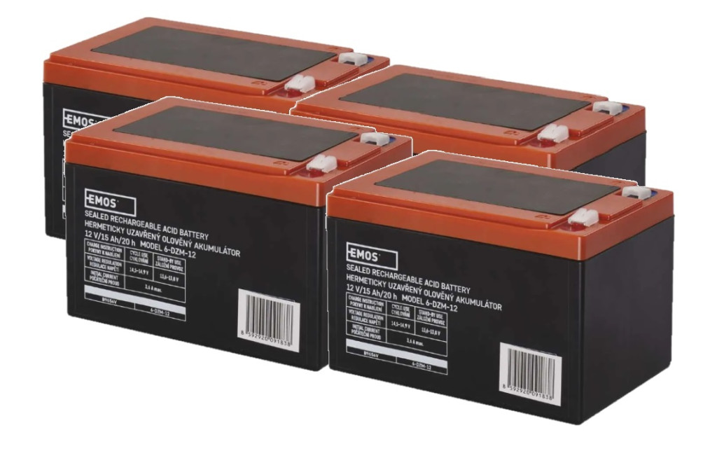 12V 15Ah EMOS B9656V típusjelölésű elektromos kerékpárba ciklikus zselés akkumulátor csúszósaru csatlakozási lehetőséggel. Méret: (H)151mm x (Sz)100,2mm x (M)100,4mm saruval 104,6mm. Súly: 4,51kg/db. Várható élettartam 5 év (3 órás kisütésnél, 25°C-on) Felhasználási terület: elektromos meghajtású autó, elektromos kerékpár, e-bike, golfkocsi, kerekesszék, rokkantkocsi...stb.