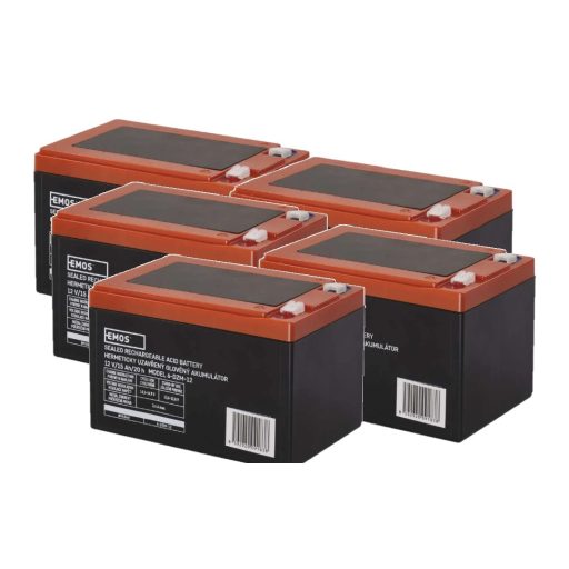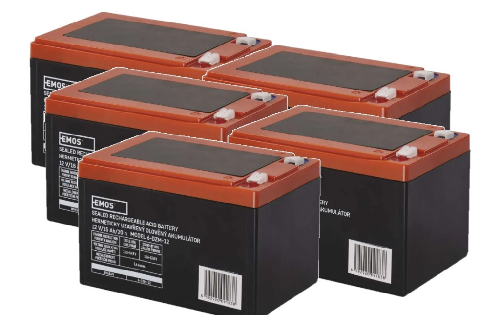 12V 15Ah EMOS B9656V típusjelölésű elektromos kerékpárba ciklikus zselés akkumulátor csúszósaru csatlakozási lehetőséggel. Méret: (H)151mm x (Sz)100,2mm x (M)100,4mm saruval 104,6mm. Súly: 4,51kg/db. Várható élettartam 5 év (3 órás kisütésnél, 25°C-on) Felhasználási terület: elektromos meghajtású autó, elektromos kerékpár, e-bike, golfkocsi, kerekesszék, rokkantkocsi...stb.