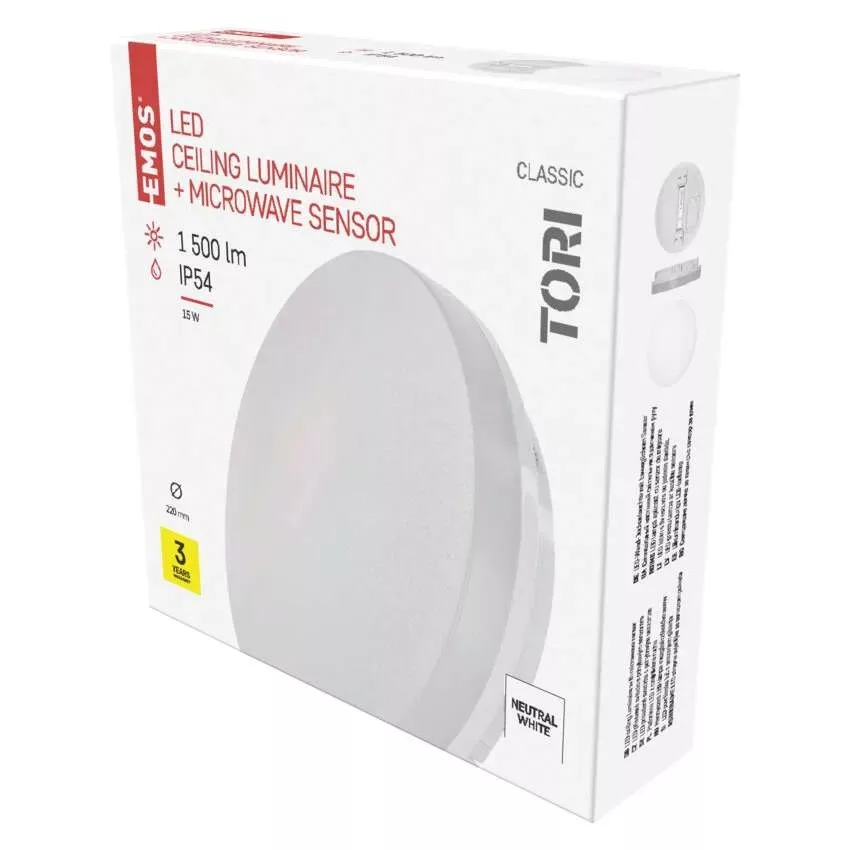 EMOS Tori mennyezeti lámpa mozgásérzékelővel 15W 1500lm IP54 természetes fehér ZM4328