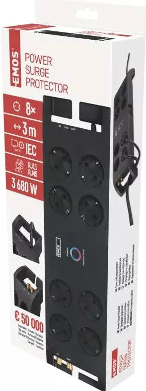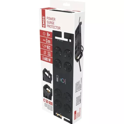 EMOS túlfeszültség védelem 8 aljzat 3m 1800j schuko P54252