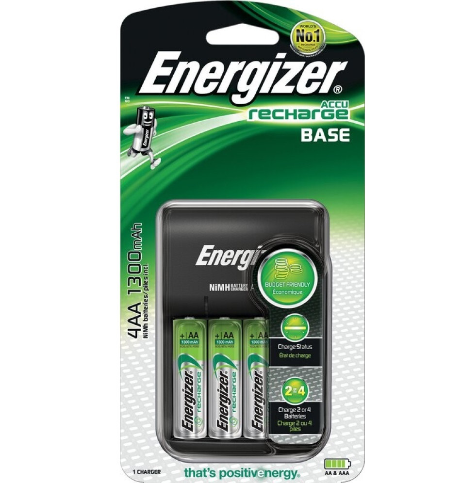 Az Energizer Base töltő AA és AAA újratölthető akkumulátorokhoz tökéletes megoldás mindennapi eszközeihez. Ár-érték arányt kínál, nem foglal sok helyet, és teljesen feltöltött újratölthető akkumulátorokat biztosít, amikor csak szüksége van rájuk. Specifikáció: Kettő vagy négy NiMH elem méretű R6 / AA vagy R03 / AAA A LED kijelző mutatja a töltési folyamatot Költség-hatékony töltő kedvező áron Töltési idő: -R6 / AA 1300-7 óra -R6 / AA 2000-11 óra -R6 / AA 2300-13 óra -R03 / AAA 700-8 óra -R03 / AAA 800-10 óra Tartalmaz 4 Energizer R6 AA 1300 mAh újratölthető akkumulátort