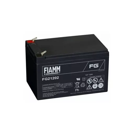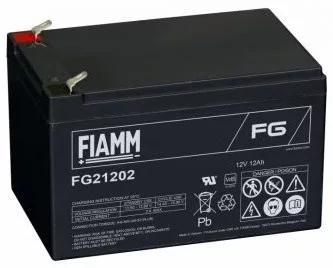 12V 12Ah FIAMM FG21202 zselés akkumulátor Csúszósarus csatlakozás Várható élettartam 5 év (20 órás kisütésnél, 25°C-on) Felhasználási terület: Szünetmentes áramforrás, riasztó- és tűzvédelmi rendszerek, gyerekjátékok, etetőhajók, lámpák, elektromos kerékpár...stb.)