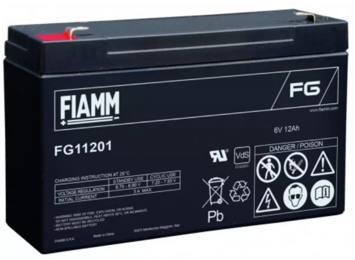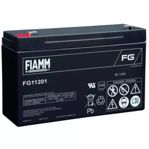 FIAMM FG11201 6V 12Ah AGM (Absorbent Glass Mat) technológiával gyártott karbantartás mentes ólomsavas zselés akkumulátor. Kiváló minőség és megbízhatóság a jellemzője. Az ólomlemezek és elektrolit megbízható tápellátást biztosítanak a legtöbb feszültségtámogatási rendszernek, például az UPS-nek vagy a vészhelyzeti áramellátásnak. Rendkívül erős teljesítmény-visszanyerő tulajdonság, alacsony önkisülési jellemző így számos pozícióba telepíthető mint pl. riasztórendszerek, távközlési berendezések, védelmi rendszerek, orvosi felszerelés...stb.