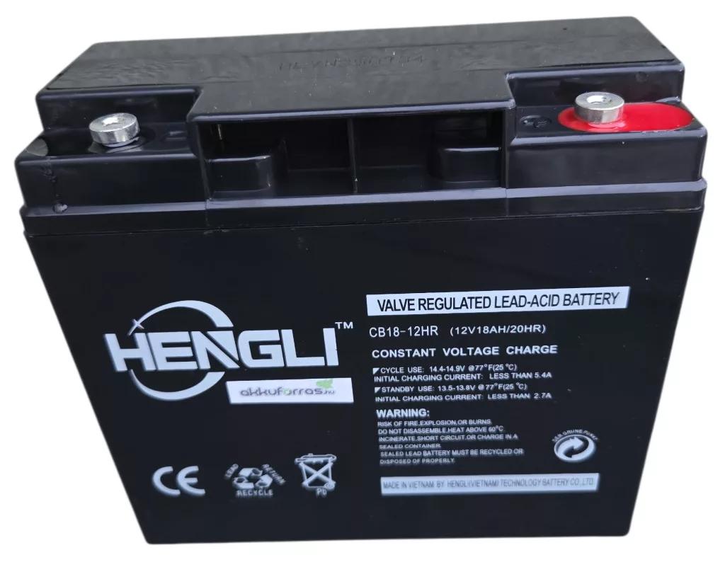 A HENGLI CB18-12HR Highrate egy 12V-os, 18Ah nagy kapacitású, gondozásmentes zárt ólomsavas (VRLA) AGM akkumulátor, amelyet főként szünetmentes tápegységekhez (UPS), biztonsági rendszerekhez, vészvilágításhoz és egyéb alkalmazásokhoz használnak.