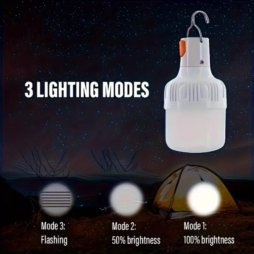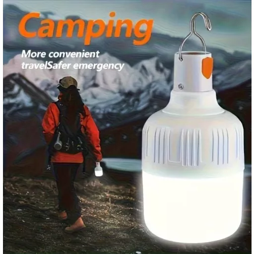 Hordozható és USB-ről újratölthető nagy fényerejű LED Kemping Lámpa. Javasolt felhasználás: Éjszakai Fény Vészhelyzetre, Kempingezéshez, Horgászathoz.