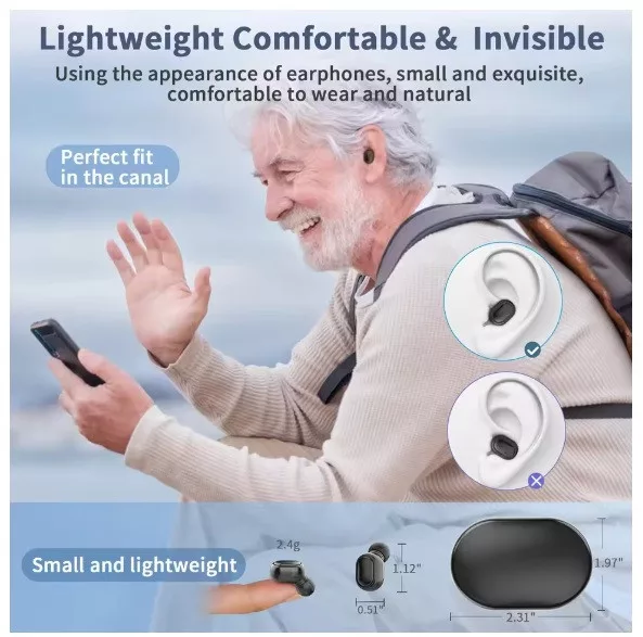 Újratölthető hallókészülék időseknek süketségre intelligens zajcsökkentő, audifonos, állítható hangerő rendszerrel.