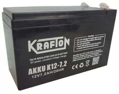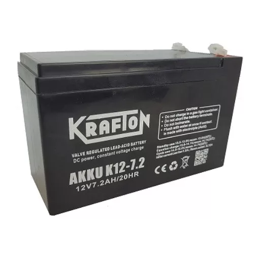 Krafton K12-7.2 12V 7,2Ah VRLA technológiával gyártott karbantartás mentes ólomsavas zselés akkumulátor. Kiváló minőség és megbízhatóság a jellemzője. Az ólomlemezek és elektrolit megbízható tápellátást biztosítanak a legtöbb feszültségtámogatási rendszernek, például az UPS-nek vagy a vészhelyzeti áramellátásnak. Rendkívül erős teljesítmény-visszanyerő tulajdonság, alacsony önkisülési jellemző így számos pozícióba telepíthető mint pl. riasztórendszerek, távközlési berendezések, védelmi rendszerek, orvosi felszerelés...stb.