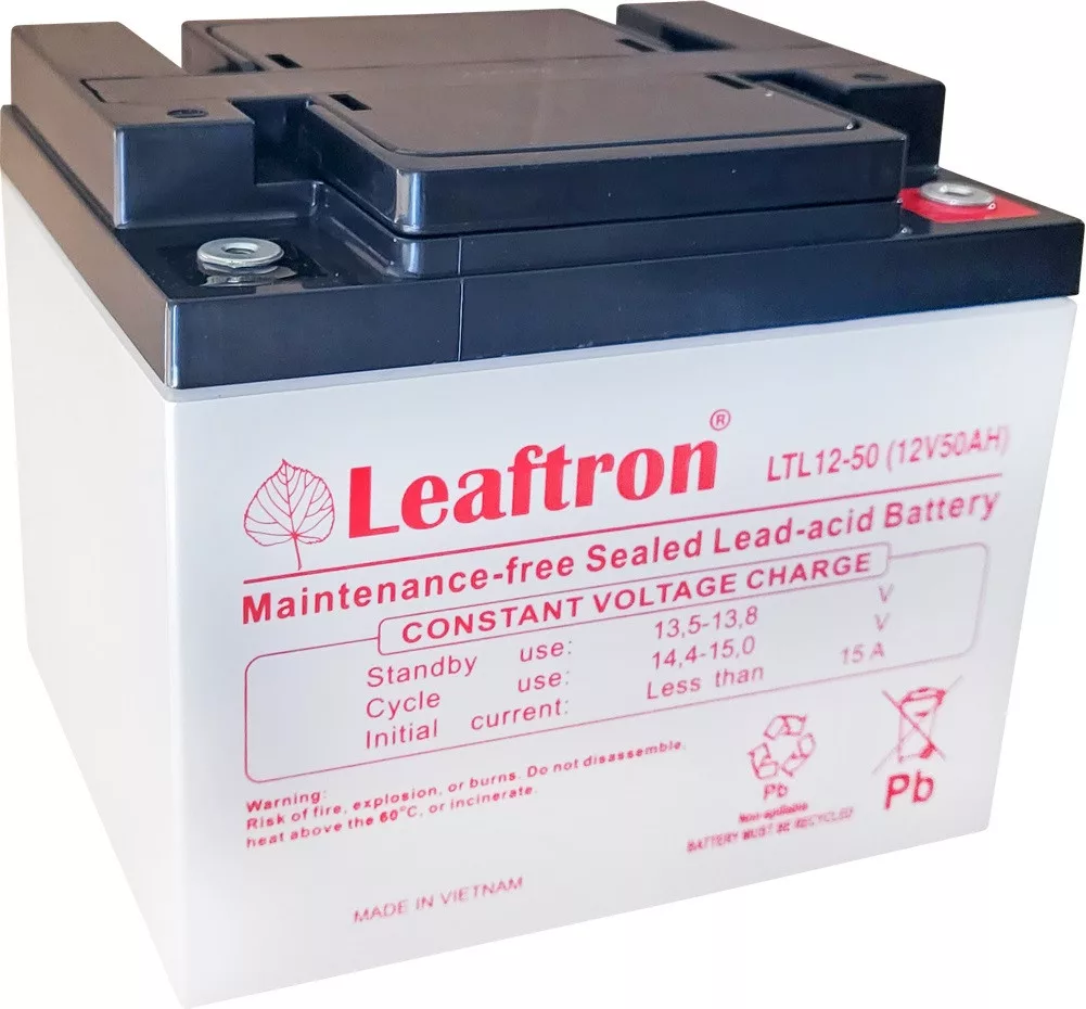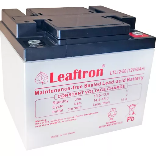 - Leaftron zselés akkumulátor 12V 50Ah kapacitással.