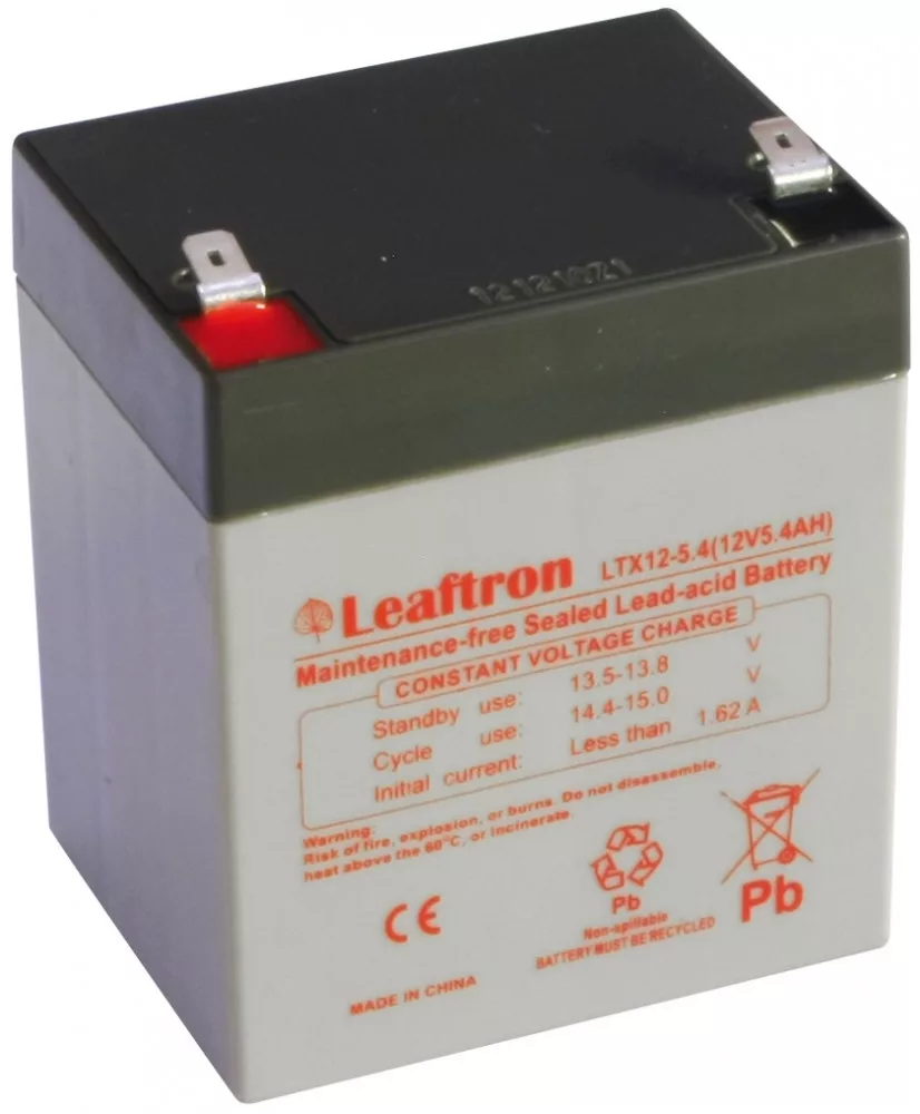 12V 5,4Ah Leaftron LTX12-5.4 T2 VRLA technológiás, szeleppel vezérelt (VRLA) zártrendszerű gondozásmentes (zselés) ólomsavas akkumulátor. A Leaftron márka egy megbízható energiatároló akkumulátor általános célú használatra mely ismételten újratölthető. Szigetelt tömítéssel vízszintes, függőleges és oldalsó irányban is elhelyezhető, biztonságát és funkcióit ez nem befolyásolja. Várható élettartama 3-5 év (Standby - Készenléti üzemmódban 5 év, 25 ⁰C), mely nagyban függ a környezeti hőmérséklettől,felhasználási területtől, terheléstől. Felhasználási terület: riasztó és tűzvédelmi rendszerek, tápegységek,etetőhajók, gyerekjátékok, lámpák ... stb.