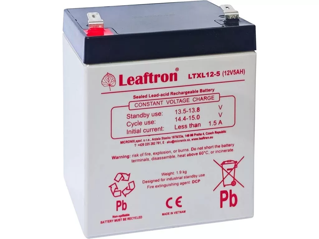 LTXL12-5 T2 12V 5Ah - tartalék áramforrás, gondozásmentes, VRLA, teljesen zárt Leaftron márkájú zselés akkumulátor. AGM technológia. Szünetmentesekhez, riasztókhoz, tűzvédelmi eszközökhöz.