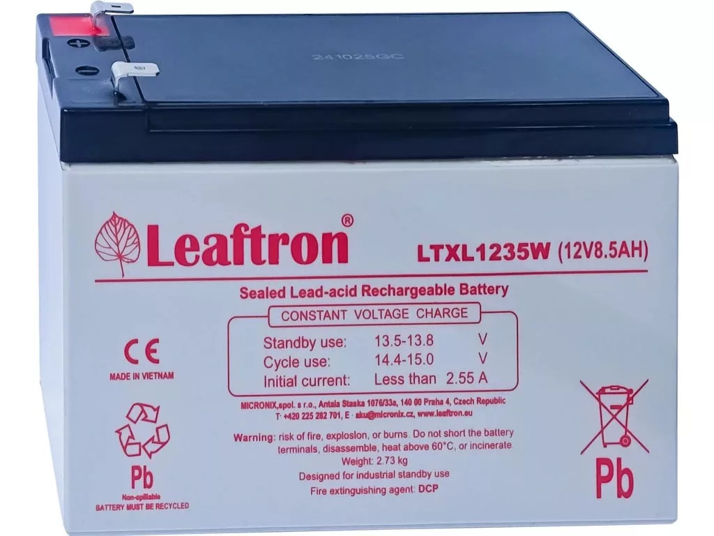 LTXL1235W T2 12V 8,5Ah - tartalék áramforrás, gondozásmentes, VRLA, teljesen zárt Leaftron márkájú zselés akkumulátor. AGM technológia. Szünetmentesekhez, riasztókhoz, tűzvédelmi eszközökhöz.