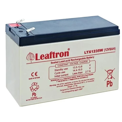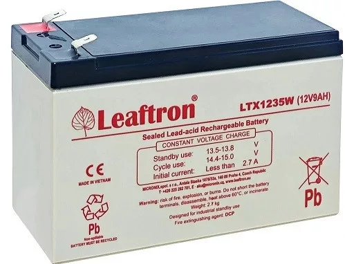 LTX1235W T2 12V 9Ah - tartalék áramforrás, gondozásmentes, VRLA, teljesen zárt Leaftron márkájú zselés akkumulátor. AGM technológia. Szünetmentesekhez, riasztókhoz, tűzvédelmi eszközökhöz.