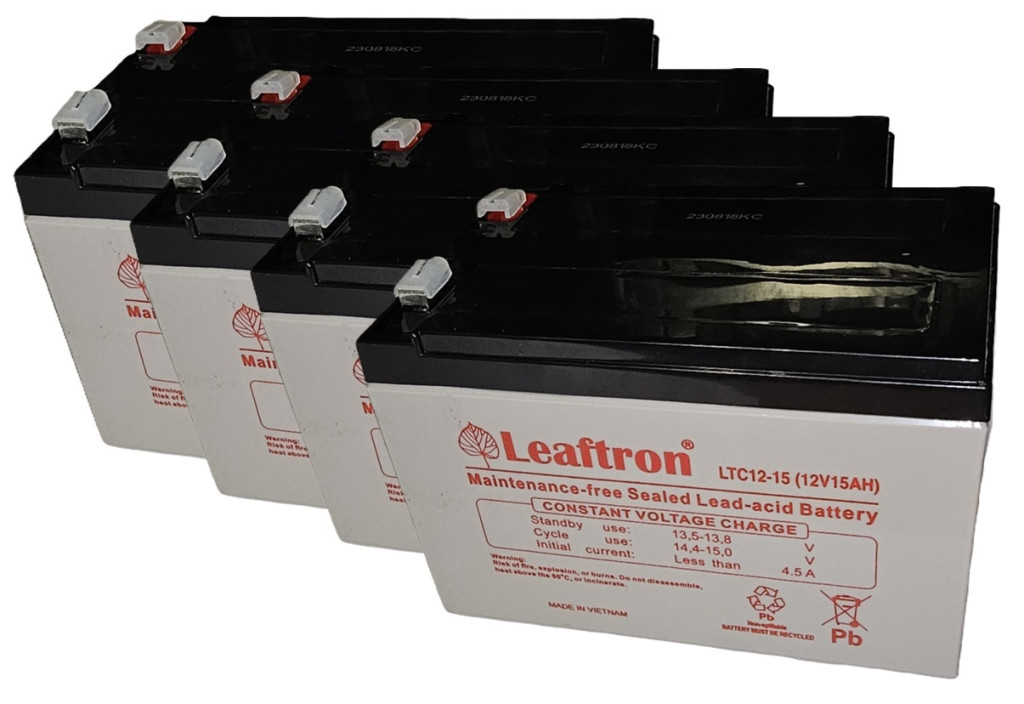48V 15Ah (4db 12V 15Ah) Leaftron LTC12-15 AGM technológiás, szeleppel vezérelt (VRLA) zártrendszerű gondozásmentes (zselés) ólomsavas akkumulátor. A Leaftron márka egy megbízható energiatároló akkumulátor általános célú használatra mely ismételten újratölthető. Szigetelt tömítéssel vízszintes, függőleges és oldalsó irányban is elhelyezhető, biztonságát és funkcióit ez nem befolyásolja. Várható élettartama 3-5 év (Standby - Készenléti üzemmódban 5 év, 25 ⁰C), mely nagyban függ a környezeti hőmérséklettől,felhasználási területtől, terheléstől. Felhasználási terület: riasztó és tűzvédelmi rendszerek, tápegységek,etetőhajók, gyerekjátékok, lámpák ... stb.