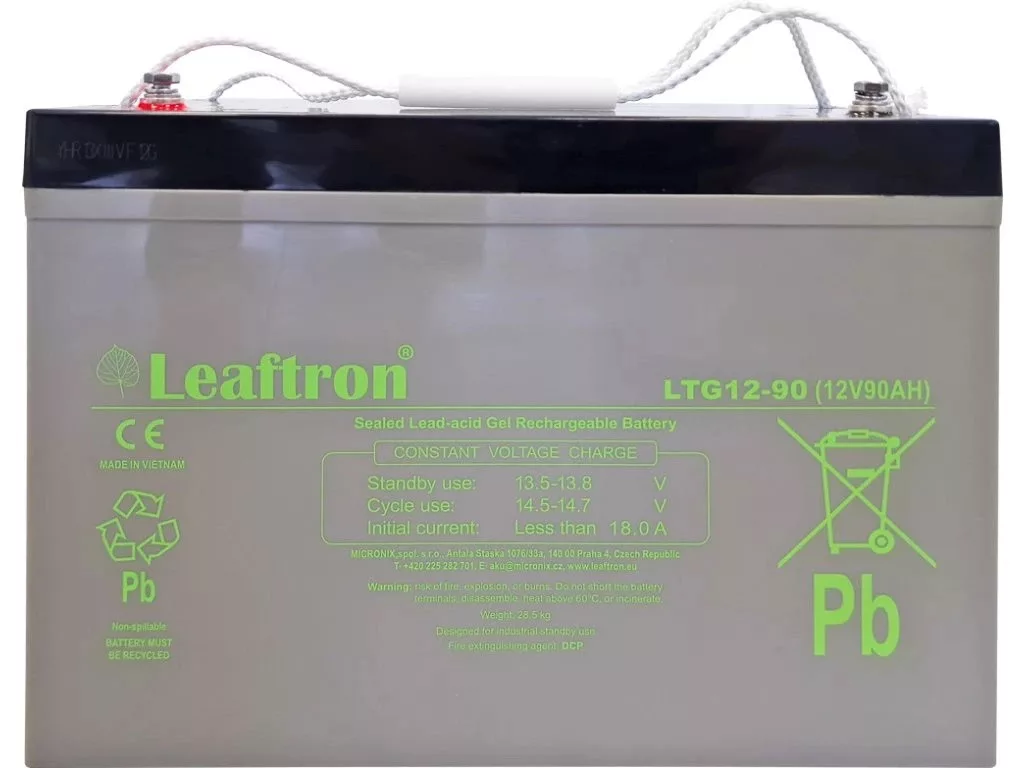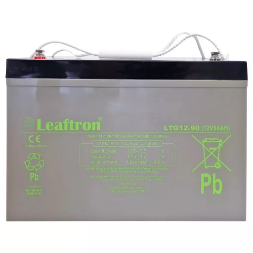 Az LTG sorozatú Leaftron akkumulátorokat a legszélesebb körű alkalmazásokhoz tervezték. Az LTG12-90 akkumulátorok 1700 kisütési ciklusig (30%-s kisütési mélység esetén), vagy akár 12 évig "készenléti" (Stand-by) üzemmódban használhatóak. A Leaftron gél akkumulátorok karbantartást nem igényelnek, teljesen zártak és bármilyen helyzetben működnek.