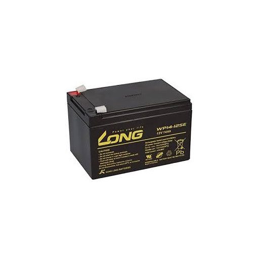 12V 14Ah Long WP12-14SE típusjelölésű elektromos kerékpárba ciklikus zselés akkumulátor csúszósaru csatlakozási lehetőséggel. Méret: (H)151mm x (Sz)100,2mm x (M)100,4mm saruval 104,6mm. Súly: 4,51kg/db. Várható élettartam 5 év (3 órás kisütésnél, 25°C-on) Felhasználási terület: elektromos meghajtású autó, elektromos kerékpár, e-bike, golfkocsi, kerekesszék, rokkantkocsi...stb.