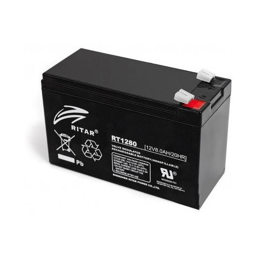 12V 8Ah (20 órás kisütésnél, 25°C-on) Ritar RT1280 zselés akkumulátor Felhasználási terület: szünetmentes tápegység, riasztó rendszer