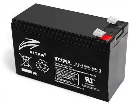 12V 8Ah (20 órás kisütésnél, 25°C-on) Ritar RT1280 zselés akkumulátor Felhasználási terület: szünetmentes tápegység, riasztó rendszer