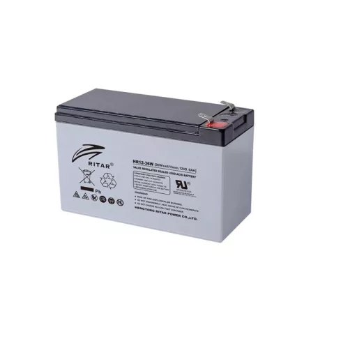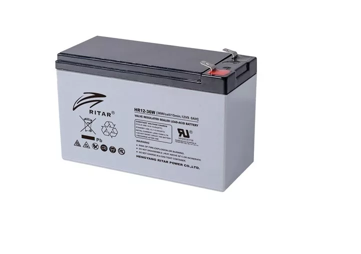 12V 9Ah Ritar HR12-36W F2 nagyáramú zárt ólomsavas akkumulátor! Alkalmazási terület: Szünetmentes tápegységbe, riasztó rendszerbe, ciklikus elektromos kerékpárba, etetőhajóba, elektromos meghajtású gyerekjátékokba, lámpákba stb.