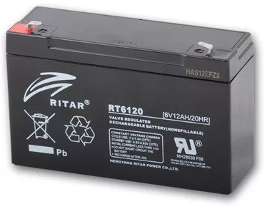 Ritar RT6120 6V 12Ah AGM (Absorbent Glass Mat) technológiával gyártott karbantartás mentes ólomsavas zselés akkumulátor. Kiváló minőség és megbízhatóság a jellemzője. Az ólomlemezek és elektrolit megbízható tápellátást biztosítanak a legtöbb feszültségtámogatási rendszernek, például az UPS-nek vagy a vészhelyzeti áramellátásnak. Rendkívül erős teljesítmény-visszanyerő tulajdonság, alacsony önkisülési jellemző így számos pozícióba telepíthető mint pl. riasztórendszerek, távközlési berendezések, védelmi rendszerek, orvosi felszerelés...stb.