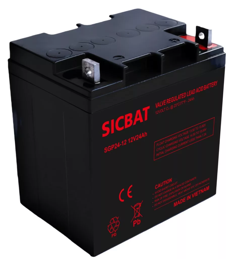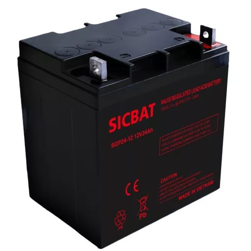 A SICBAT SGP24-12 12V 24Ah egy nagy kapacitású, zárt zselés ólomakkumulátor, amelyet tartós, megbízható és karbantartásmentes működésre terveztek. Széles körben alkalmazható különböző ipari és otthoni energiaellátási rendszerekben.