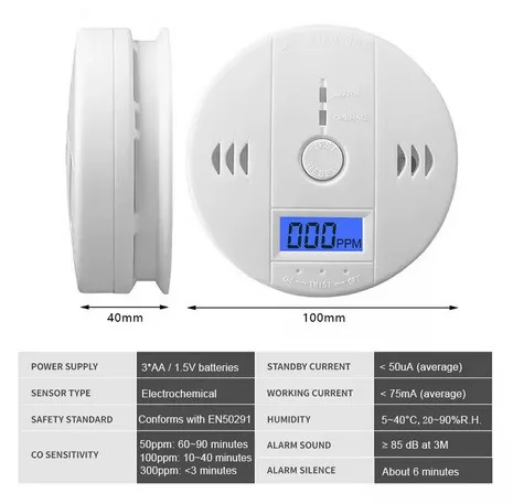 - Riasztási hang: ≥85 dB 3 méteren belül