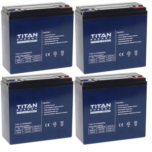 48V 22Ah TitanEnergy TC22-12 (4db 12V 22Ah) 6-DZM-20 vagy 6-DZF-20 elektromos kerékpárba ciklikus zselés akkumulátor csavaros csatlakozással. Méret:(H)181mm x (Sz)76mm x (M)167mm Súly: nettó 7.21kg/db Garancia 12 hónap + 12 hónap jótállási idő. Várható élettartam 5 év (20 órás kisütésnél, 25°C-on). Felhasználási terület: elektromos kerékpár, e-bike, elektromos meghajtású autó, golfkocsi, kerekesszék, rokkantkocsi, tricikli...stb.