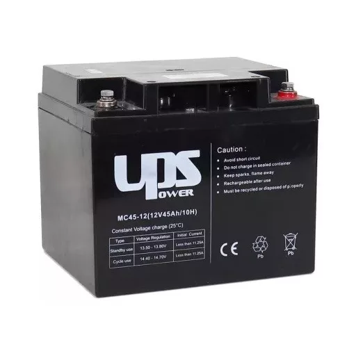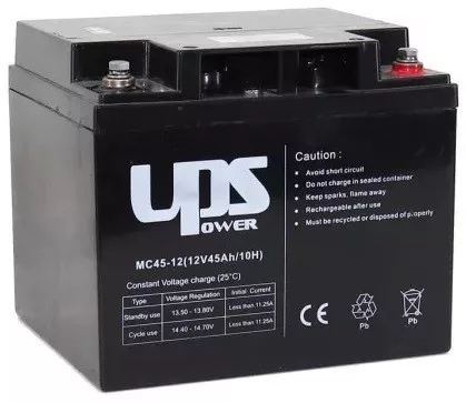 Az UPS MC45-12 egy 12 V-os, 45 Ah kapacitású zárt ólomsavas akkumulátor, amelyet elsősorban szünetmentes tápegységek (UPS) alkalmazásaiban, valamint vészvilágítási és biztonsági rendszerekhez használnak.