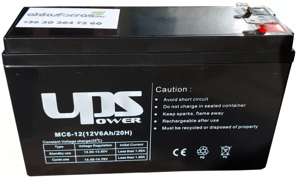 A UPS MC6-12 egy zárt ólomsavas (VRLA) AGM akkumulátor, amelyet elsősorban szünetmentes tápegységekhez (UPS), biztonsági rendszerekhez, vészvilágításhoz és egyéb kis fogyasztású eszközökhöz használnak.