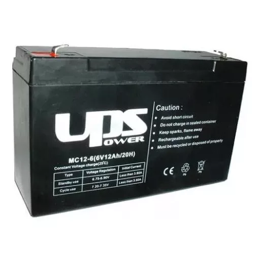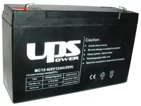 UPS Power MC12-6 6V 12Ah AGM (Absorbent Glass Mat) technológiával gyártott karbantartás mentes ólomsavas zselés akkumulátor. Kiváló minőség és megbízhatóság a jellemzője. Az ólomlemezek és elektrolit megbízható tápellátást biztosítanak a legtöbb feszültségtámogatási rendszernek, például az UPS-nek vagy a vészhelyzeti áramellátásnak. Rendkívül erős teljesítmény-visszanyerő tulajdonság, alacsony önkisülési jellemző így számos pozícióba telepíthető mint pl. riasztórendszerek, távközlési berendezések, védelmi rendszerek, orvosi felszerelés...stb.