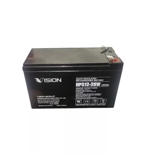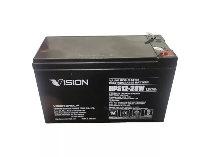 Vision 12V 7Ah HPS12-28W F2 28W nagyáramú zárt ólomsavas akkumulátor. Súly:2,6kg Csatlakozó típusa F2 széles saru Felhasználási terület: szünetmentes tápegység,riasztók, lámpák stb.